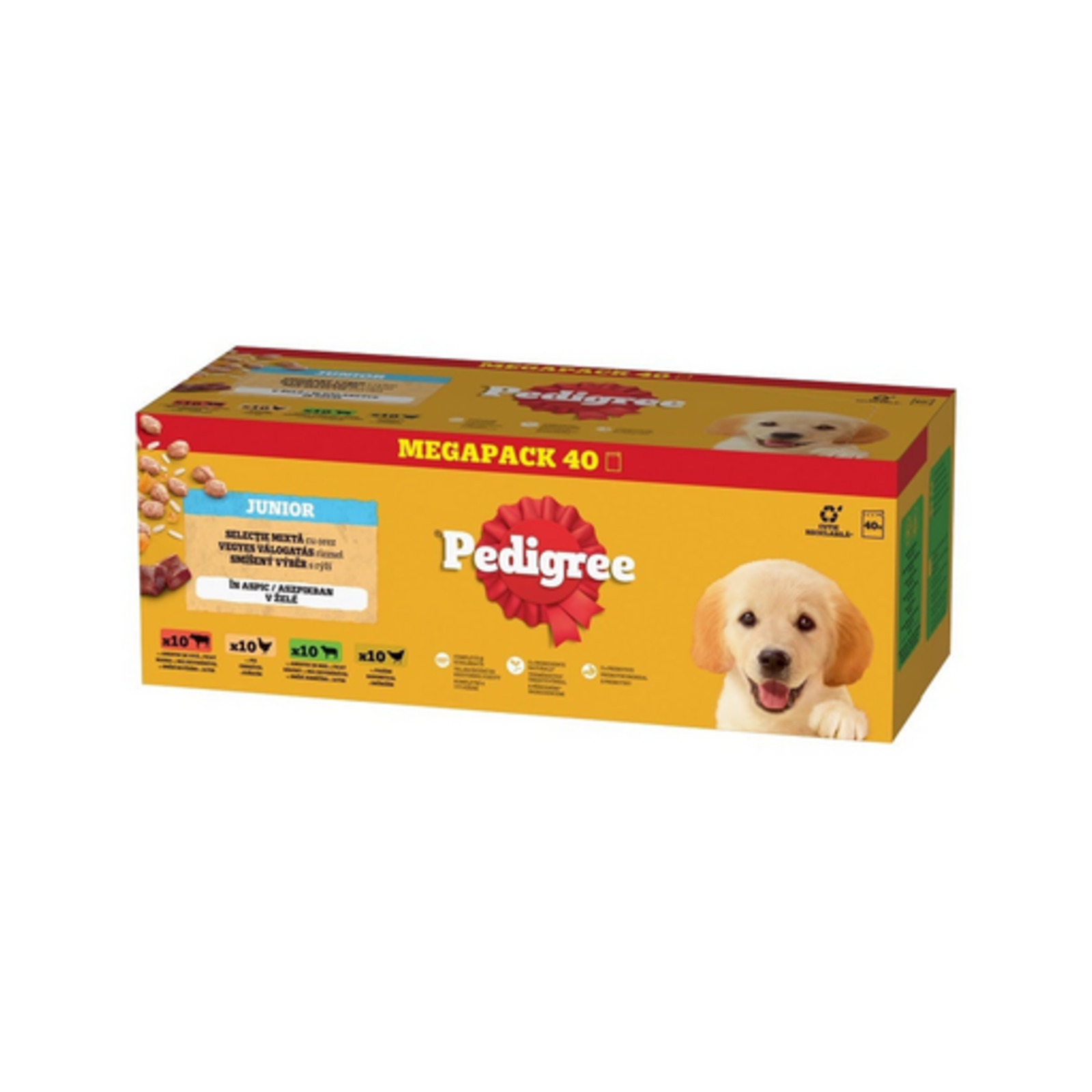 Nedves táplálék PEDIGREE Junior Ízek Választéka ízletes zselében teljes értékű táplálék minden szükséges ásványi anyaggal és vitaminnal, amely elengedhetetlen a egészséges fejlődéshez. Kifejezetten növekvő kutyák számára készült. Kölyökkutyája négy ízvariációt élvezhet: darabok marhahús és máj keverékével és rizzsel, csirkével és rizzsel, bárányhús és máj keverékével és rizzsel, baromfival és rizzsel. A receptet állatorvosok és táplálkozási szakértők dolgozták ki a WALTHAM Állati Tudományok Intézetében. Növekvő kedvence megérdemli az egészséges fejlődést, ezért a PEDIGREE Junior megfelelő mennyiségű kalciumot és foszfort tartalmaz, hogy támogassa az erős csontokat. A táplálékban található E-vitamin és antioxidánsok segítik a természetes védekező mechanizmusokat, így kutyája tovább felfedezheti a nagy, csodálatos világot. A PEDIGREE Junior táplálék rostot tartalmaz, amely könnyen felszívódik a fejlődő emésztőrendszerben, mert minden kölyökkutyának egészséges pocakra van szüksége.